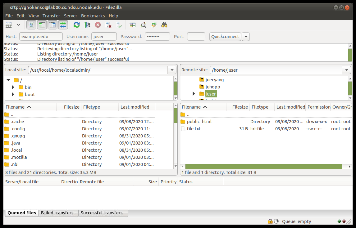 Host: example.edu Username: juser Password: Snf9WbmV3c Port: 22
