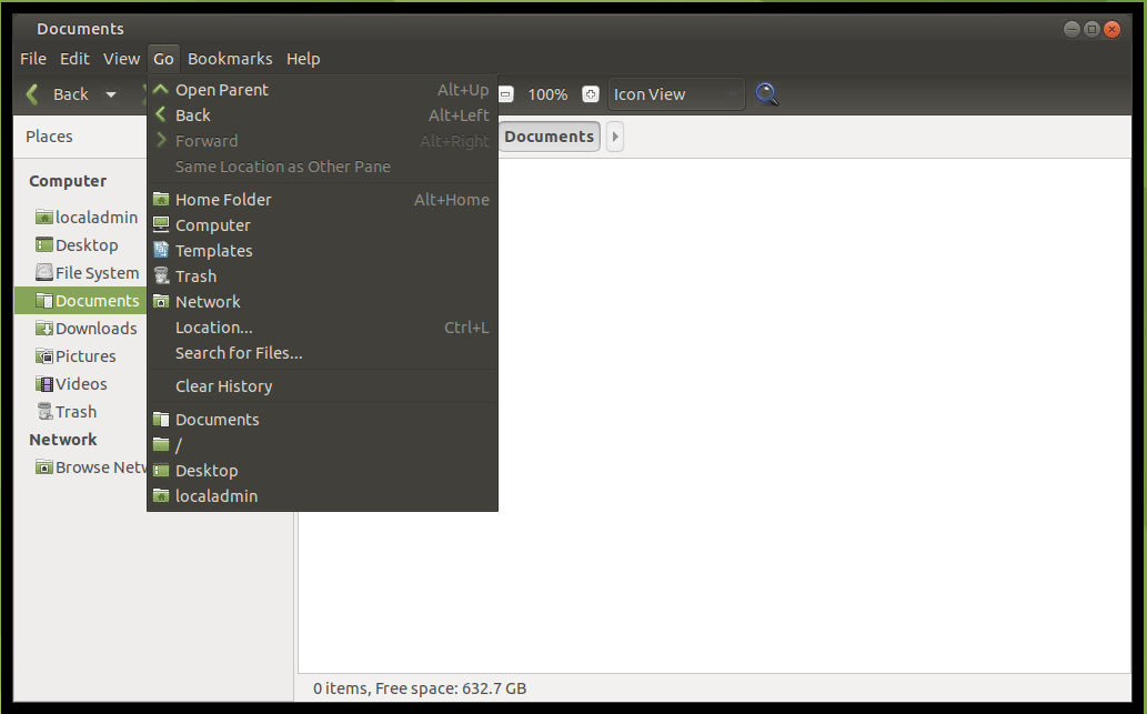 2) Open the Caja file browser and under the Go menu, chose Location.