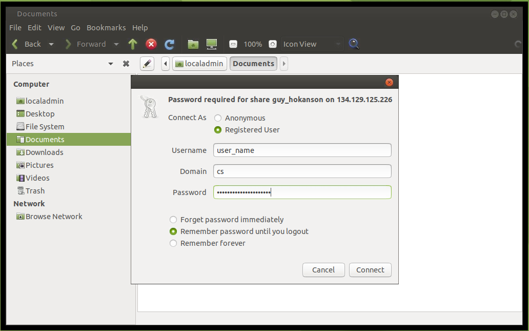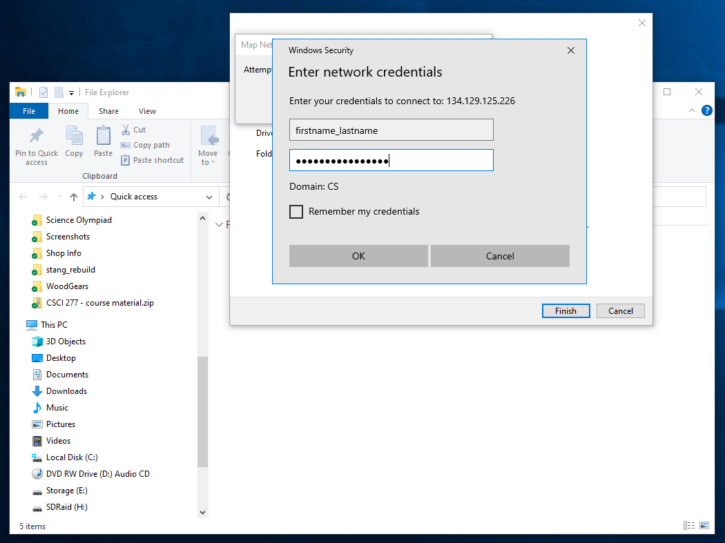 When prompted for credentials, enter your provided act name and the password associated with storage account. It will take a while to authenticate and connect the drive.
