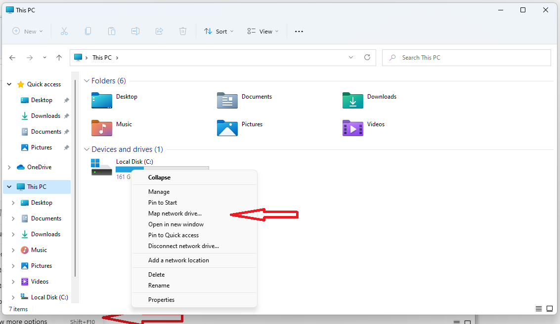 For Windows 11, right click on This PC, select Show More Options, then click Map Network Drive. See the Windows 11 info below.