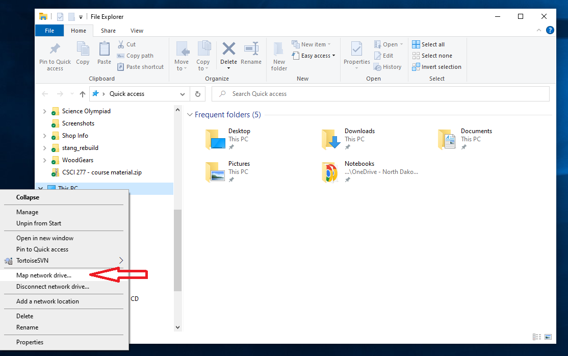 Right click on This PC (Usually found in the tree in the left pane.), and choose Map network drive