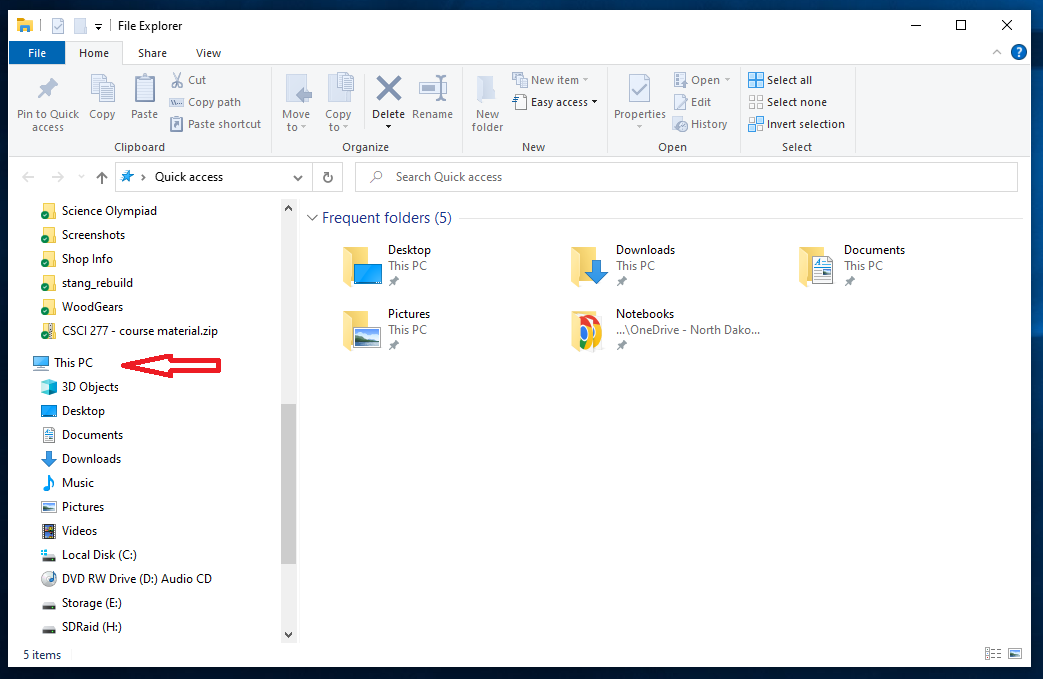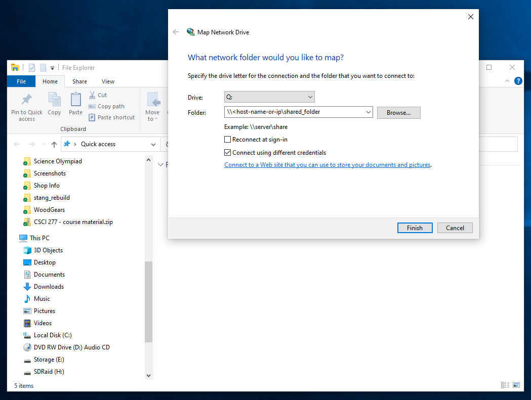 A new File Explorer window should open showing the content of your storage drive, and the the mapped drive you created should now appear under This PC.