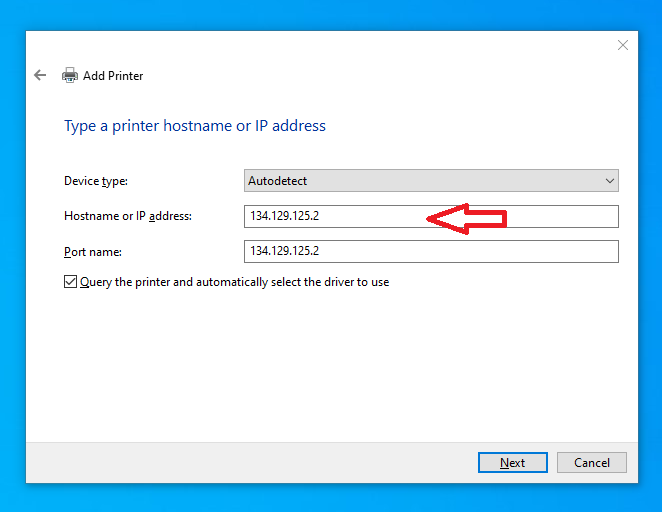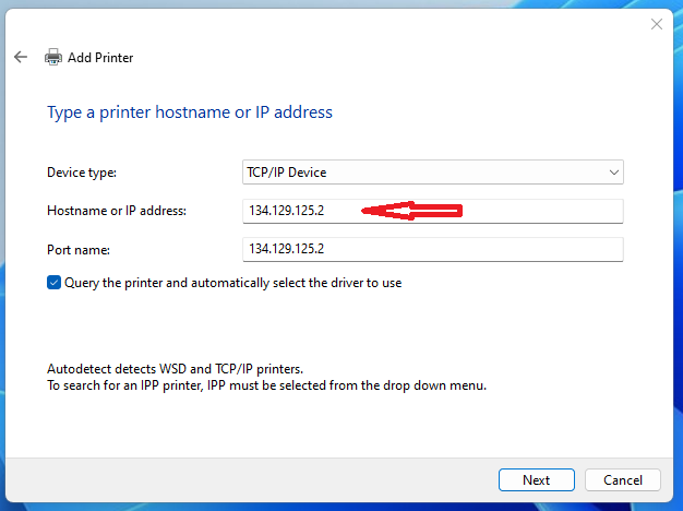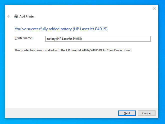 Hopefully, Windows will retrieve the printer name, if not, you may have to enter your own. Use something identifiable.